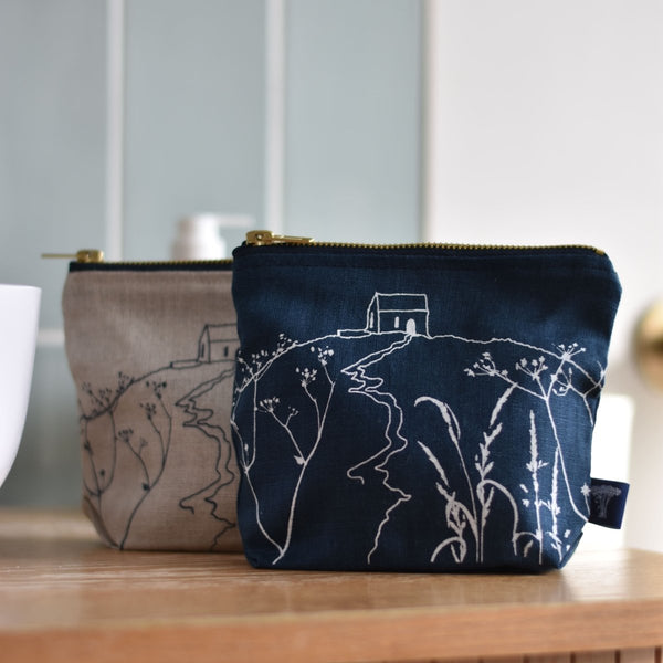 A beautiful collection of hand printed linen make up bags with a practical waterproof lining. Available is a lovely selection of linen colours and designs. Great for keeping all your make up essentials in one place.