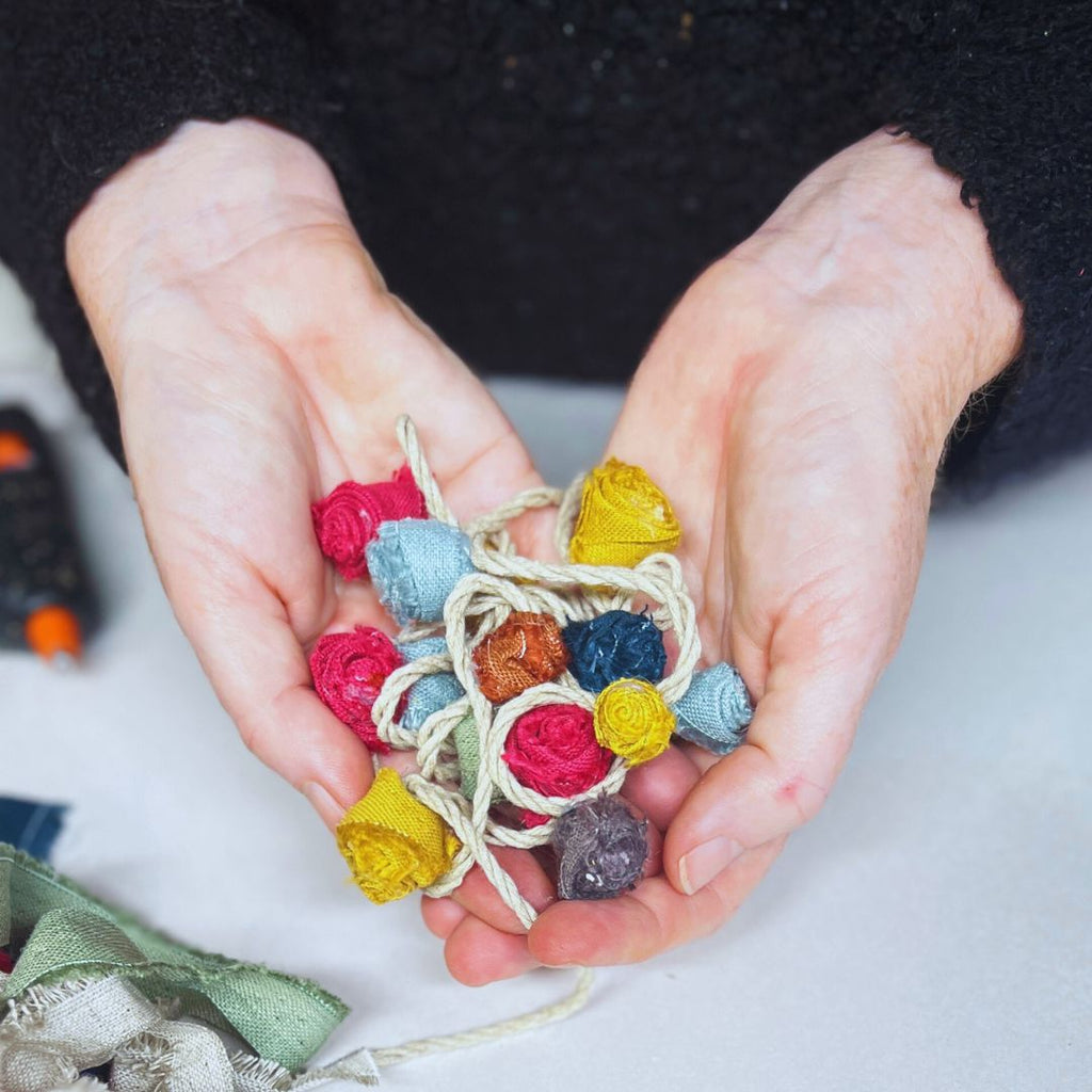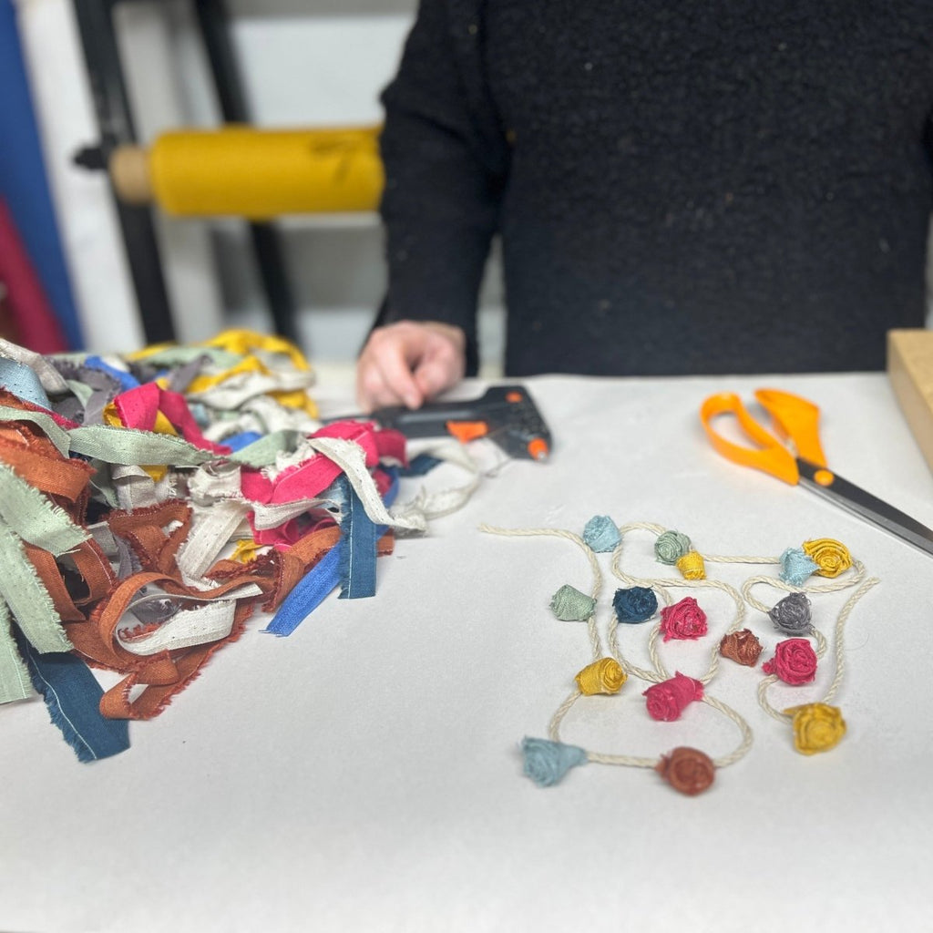Discover the art of DIY crafting with this eco-friendly, linen rose garland craft kit, designed to be used alongside our video tutorial. Watch while Helen Round guides you through the creative process of transforming fabric off-cuts into a beautiful floral garland and then make your own.