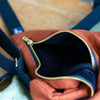 Designed for both style and convenience, this roomy, cross-body bag features a long adjustable woven dark blue strap, allowing you to customize its length for a comfortable fit. Whether you prefer to wear it across your body or over your shoulder, this versatile design adapts to your needs with ease.