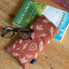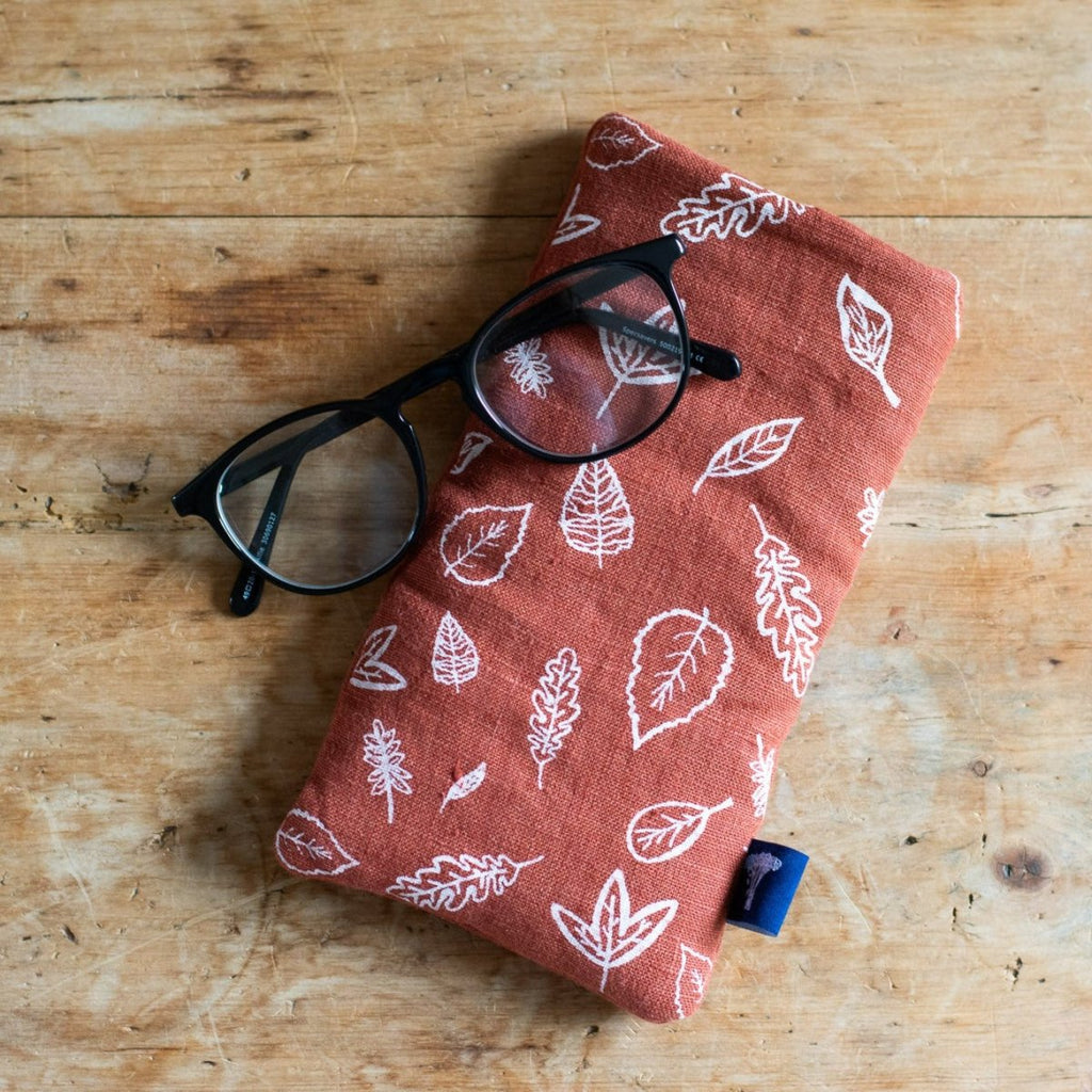 Introducing our Rust-Coloured Linen Glasses Case, a stylish and practical accessory to protect your eyewear. Crafted from high-quality linen in a warm rust hue, with a soft white leaf motif this glasses case is the perfect accessory.