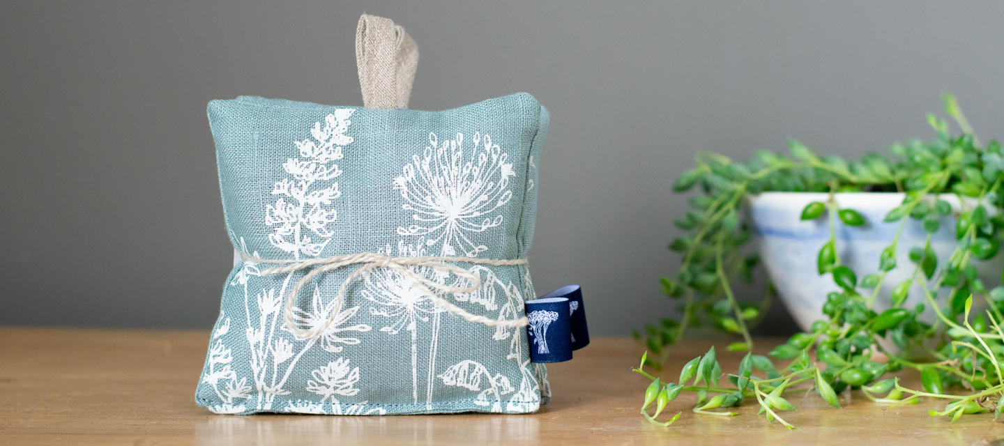 Lovely linen lavender bags, sold in a set of two and handprinted with our Garden design. Perfect for popping under your pillow for a soothing nights sleep or in your wardrobe or drawers. Hand Printed and made in our Cornish Studios.