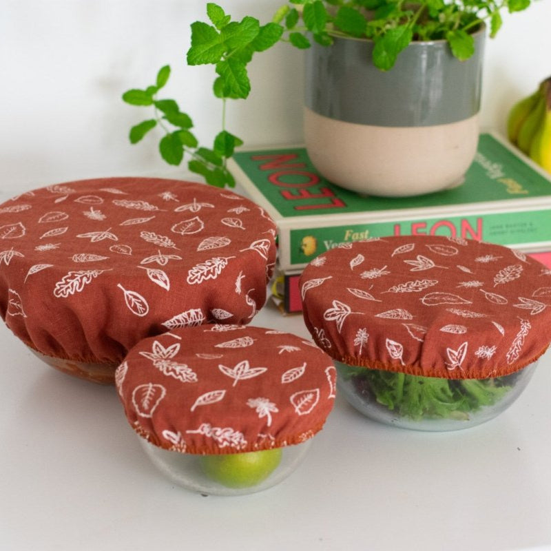 Embrace sustainability and elegance with our Rust-Coloured Linen Leaf Bowl Covers, the perfect addition to your culinary routine.